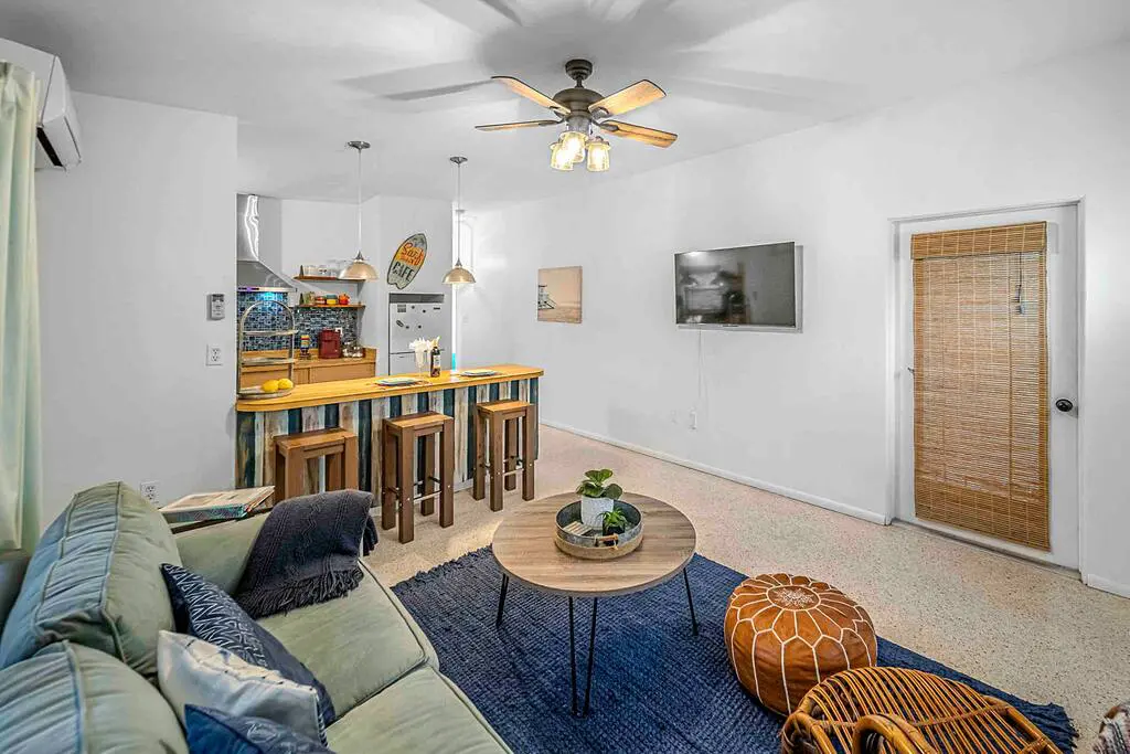 – ✅ **Surf Shack-Inspired Living Room** – Stylishly appointed with retro decor, a flat-screen TV with streaming channels, and cozy seating to unwind after a day at the beach.