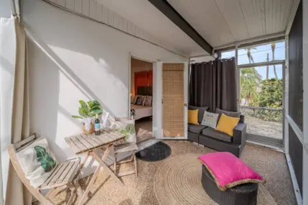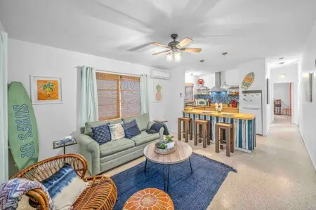 Discover the perfect beach getaway at this charming surf shack-inspired private apartment, just off the crystal white sands of Siesta.