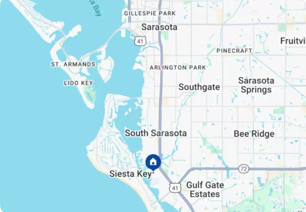 • Siesta Key Beach: 1.0 miles, approximately 8 minutes.