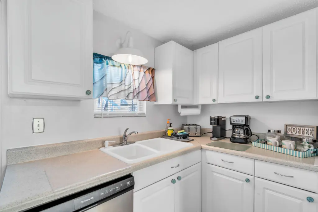 The soothing colors of sea, sky & sand create a cheery welcome in this bright vacation residence, with everything you need for a getaway to the beach. The open concept living space offers a fully equipped kitchen, dining area and 50 inch TV.